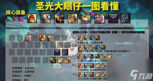 《云顶之弈》是一款由RiotGames开发的自走棋游戏,玩家需要通过合理搭配阵容和策略,挑战其他玩家,在竞技场中争夺胜利。本文将为大家介绍如何搭配玉剑宗师阵容,并给出详细的阵容搭配和发展思路。 1.玉剑宗师阵容的核心——玉剑宗师:玉剑宗师是一款极具爆发力和生存能力的职业,可以对敌 阅读全文...