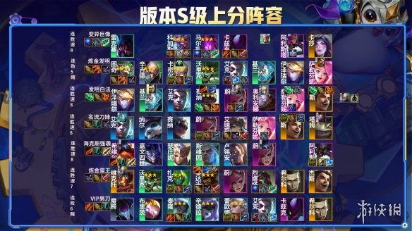 云顶之弈S6.5霓虹之夜阵容排行 阵容按照从强到弱从上到下排序,大家按照顺序玩阵容即可,老手如果再加上熟悉了测试服各个棋子的极致,对各种费用的手法也很熟悉的话,拿到这张图今天基本上就是神。 版本第一阵容变异巨像,然后是赌老鼠,这两个都是老阵容,和过去基本上一样,运营快节奏3费阵容就是发明和蛮王, 阅读全文...