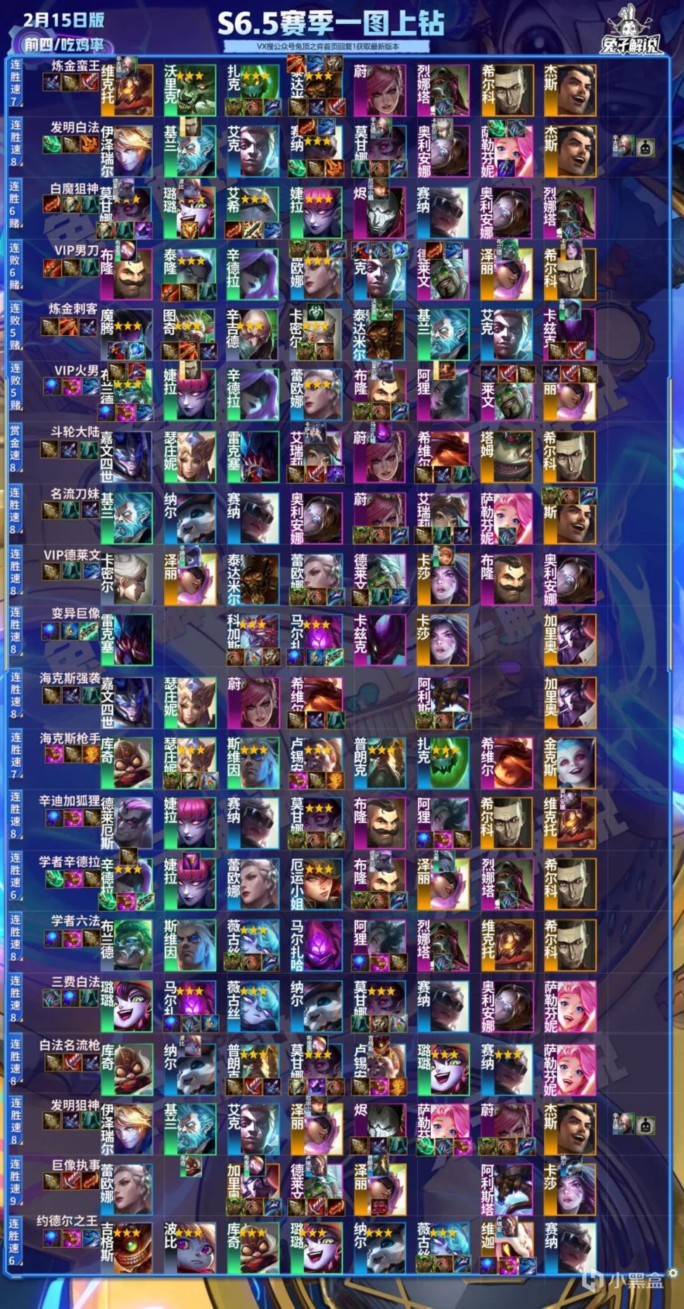 云顶之弈S6.5版本霓虹之夜,钻石局的热门阵容已经更新了,目前9个阵容在钻石局胜率领跑,以下是S6.5钻石局高胜率阵容分享。 首先是最重要的阵容,做过站位图的是11个阵容,这11个都是玩会了强势的阵容,并作了强度的排序,其他的阵容是复盘其他王者玩家战绩的视频,是可以玩但是兔子没玩熟的阵容,版本 阅读全文...
