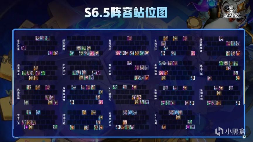 云顶之弈S6.5版本霓虹之夜T0T1上分阵容搭配攻略: 阵容按照从强到弱从上到下排序,大家按照顺序玩阵容即可,老手如果再加上熟悉了测试服各个棋子的极致,对各种费用的手法也很熟悉的话,拿到这张图今天基本上就是神。 没看明白的敲黑板,看重点,版本第一阵容变异巨像,然后是赌老鼠,这两个都是老阵容,和 阅读全文...
