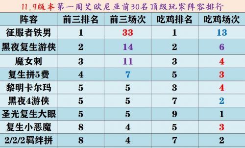 云顶之弈S5刚开的时候,我们根据游戏数据的更新改动推出了一些吃鸡阵容。经过五一一个假期的实战检验,小编整理出了国服吃鸡率最高的几个阵容,下面一起来看看详情吧~ 云顶之弈s5阵容最新搭配图: 本周共统计150场游戏对局。涵盖了15套阵容体系。赛季初只有15套阵容上榜这是摩昂没想到的,统计完一看原来 阅读全文...