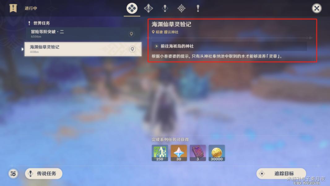 原神海渊仙草灵验记是海祇岛的一个声望任务,海渊仙草灵验记任务怎样触发?下面给小伙伴们分享一个原神海祇岛声望任务海渊仙草灵验记流程方法 『1.触发任务』 触发任务:前往海祇岛望泷村找小卷婆婆对话触发; 『2.观看任务』 观看任务:根据小卷婆婆的提示,只有从神社奉纳池中取到的水才可以滋养灵草。 『 阅读全文...