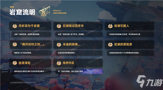 《原神》2.6版本新成就有哪些?2.6版本开放层岩巨渊后也加入了新的成就分类——岩窟流明,下面小编就为大家分享这些成就的完成攻略,感兴趣的玩家快来一起看看吧! 《原神》2.6新成就岩窟流明完成方法介绍 【丹砂高为千岩镇】 点亮「层岩巨渊」 地面区域的地图。 【巨渊险过百牢关】 点亮「层岩巨渊地下 阅读全文...