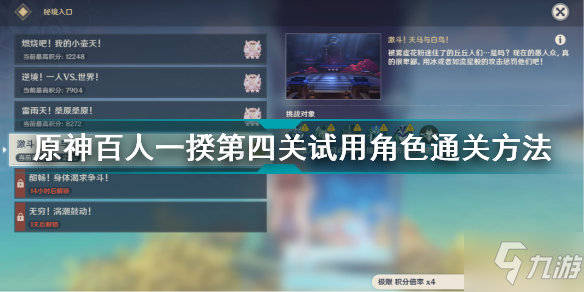 原神百人一揆第四关试用角色怎么打?原神百人一揆活动已经开启,有部分萌新因为没有足够强力的角色不是很好打,这里就由小编给大家带来原神百人一揆第四关试用角色通关方法,希望能给大家带来帮助。 原神百人一揆第四关试用角色怎么打 【第三天怪物和阵容搭配】 技能搭配: 一斗+生生回转(战技回能20)+岩伤 阅读全文...