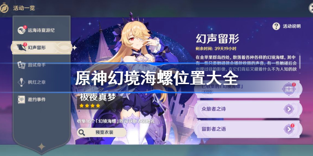 原神最近开启的幻声留形活动需要玩家收集海岛上的幻境海,很多玩家不知道分布地点,下面小编为大家带来原神幻境海螺位置大全,感兴趣的小伙伴一起了解一下吧。 原神幻境海螺位置在哪 破破岛四个 危危岛三个 布丁岛三个原神幻境海螺位置大全已经分享在上面,感兴趣的小伙伴可以参考本篇攻略,希望能为各位玩家们带来 阅读全文...