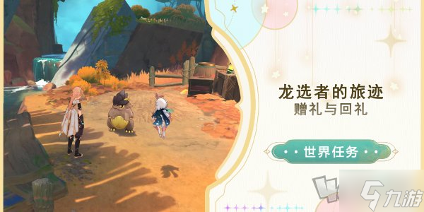 原神赠礼与回礼任务攻略 任务限制: 冒险等阶达到40级; 完成任务「在应许和遗忘之间·迷林之子」。 任务奖励:1成就,原石*20。 任务触发 1、传送隆崛坡南方向锚点,往地图的西方向走,来到瀑布下,交互发光的遗迹石柱“进入”。 2、第2次通过发光的遗迹石柱进入歇息处,获得成就「或许是个好的营地?」。 任务步骤 1、跟随龙伙伴往地图的西方向走。 2、接着传送到「回声之子」部落的曜石图腾柱,然后往地图的东北方向下飞,前往宝石铺,与伊蜜对话。 3、传送隆崛坡南方向锚点,往地图的西北方向走,来到悬崖旁的木平台上,与库拉霍对话。 4、附身匿叶龙,利用卷叶符印,在任务区域内按图中指引路线飞,前往树顶和山顶“调查”。 5、调查结束后传送隆崛坡南方向锚点,返回木平台上,再次与库拉霍对话。 6、最后传送到「回声之子」部落的曜石图腾柱,前往宝石铺,与伊蜜对话,对话结束,就可以完成任务「赠礼与回礼」。 "> 赠礼与回礼是元神5.0版本新增的一个世界任务,玩家可以通过完成这个任务获得一个【或许是个好营地】的成就,算是一个隐藏的世界任务,还不清楚怎么做这个任务的可以跟着小编以前来了解一下任务攻略。 原神赠礼与回礼任务怎么做 原神赠礼与回礼任务攻略" /> 原神赠礼与回礼任务攻略 任务限制: 冒险等阶达到4 阅读全文...