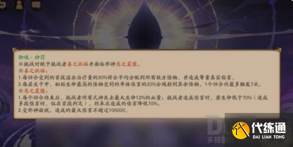 而敌人会有额外的buff,每回合结束后,我方所有式神掉血最大生命12%,造成伤害如果血量不足70%,伤害降低70%,而伤害上限不超过10W