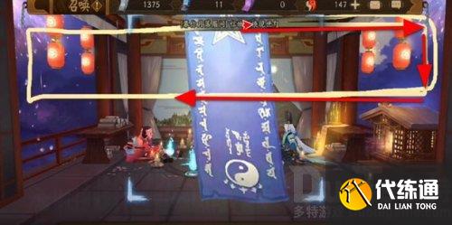 简略版的画法只需要有两个横线就可以了,如果你有“四时雅苑”的召唤屋皮肤,先把这个皮肤关闭,用最原始的皮肤来进行抽卡,根据旁边的帘子来定画线的位置。
