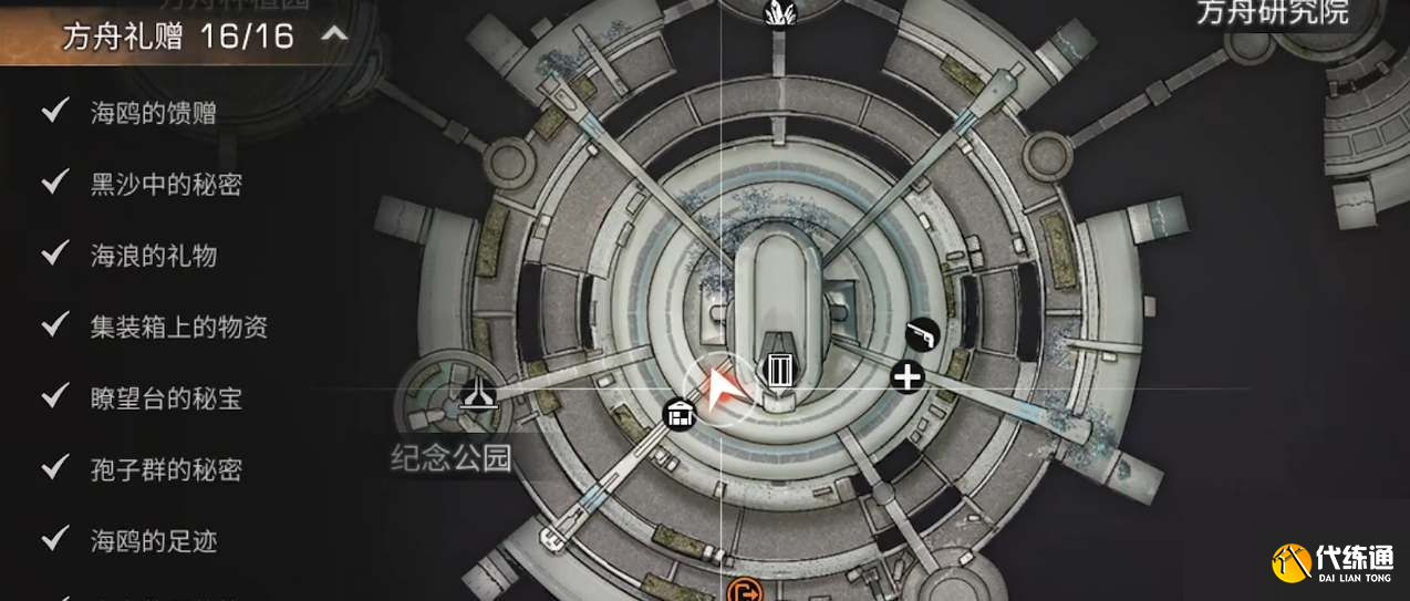 1、方舟市隐藏宝箱的寻找方法比其他地图简单很多,大家打开方舟市地图,在左侧【方舟赠礼】可以查看地图上16个隐藏宝箱的位置;