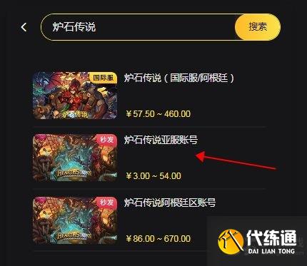 第三步:在搜索结果中选择炉石传说亚服账号,点击进入就好了。