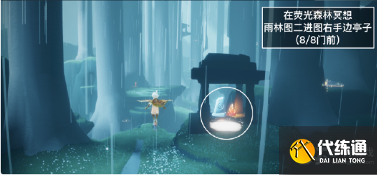 任务四:在荧光森林冥想 在雨林荧光水母图一进去右手边的亭子(8/8入口门前)内石碑前光圈处打坐并留言