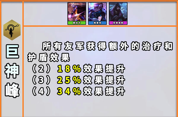 在《云顶之弈》s9的赛季版本中,有非常多的小伙伴们想要知道巨神峰这个羁绊是怎么样的,这次小编就来给大家在下文中介绍一下巨神峰的羁绊情况。 《云顶之弈》巨神峰羁绊介绍 艾欧尼亚英雄:索拉卡(2)、塔里克(3)、厄斐琉斯(4)。 羁绊效果: 你的治疗和护盾效果会提升 (2)护盾和治疗效果提升18% 阅读全文...
