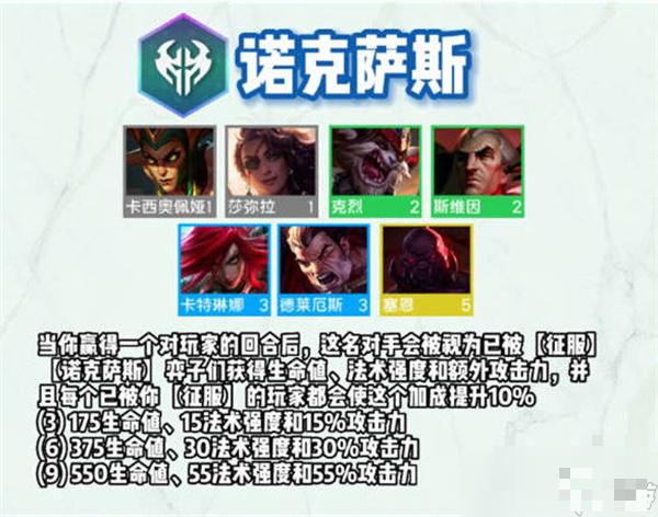《云顶之弈》s9诺克萨斯羁绊介绍,很多玩家都非常喜欢《云顶之弈》,因为其中的羁绊搭配非常之多,那么诺克萨斯的搭配是怎么样的呢,很多玩家都想了解一下,下面跟着小编一起来看看吧,希望此文章能对你有所帮助。 《云顶之弈》s9诺克萨斯羁绊介绍 1:诺克萨斯效果为,当你赢得一个对玩家的回合之后,这名对手会被 阅读全文...