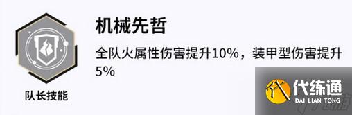全队火属性伤害提升10%,装甲型伤害提升5%