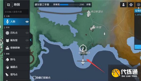 1、首先我们打开地图,传送到商会联盟港。