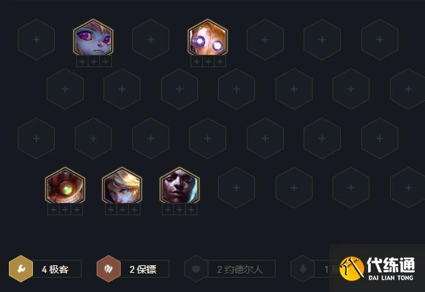 开局选秀直接拿短弓,大棒开局2-1上4人口,2-5上五人口,组成4极客,2保镖,前期的话优先做金克丝的装备给过度旗子(约德尔枪手就给卢锡安,发明家就给EZ)打工,尽可能打连胜升人口到8开始大搜。
