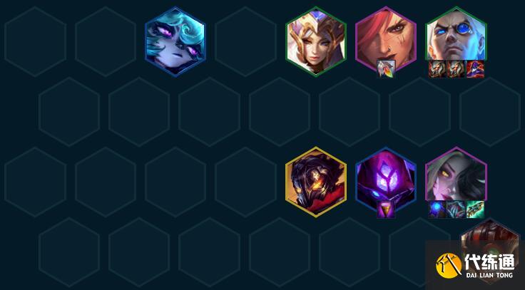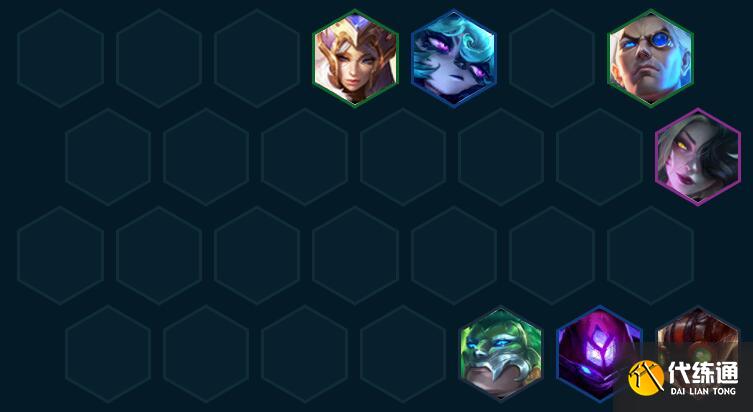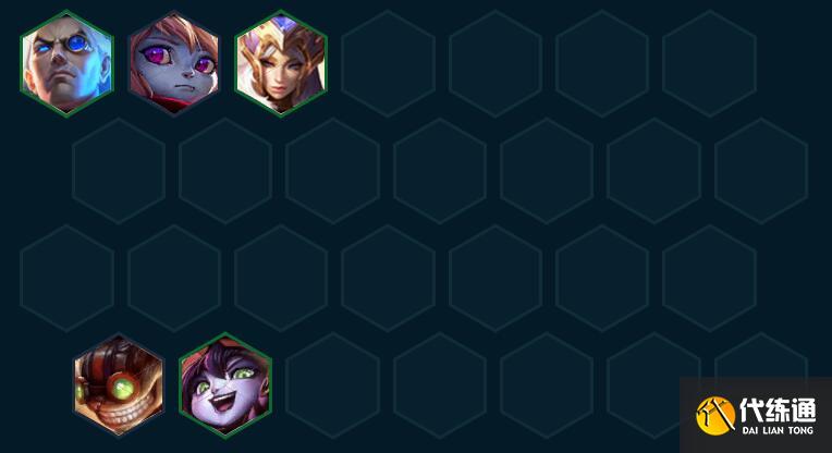 决赛圈上九,根据海克斯和转职可以开8黑魔对阵容有非常大的提升,没有的话挂五费单卡如塔姆、杰斯、金克丝都是很不错的选择,一般选择挂2星老丈人帮助迅速启动,蓝buff杰斯也可以帮助后排迅速开出技能清场。
