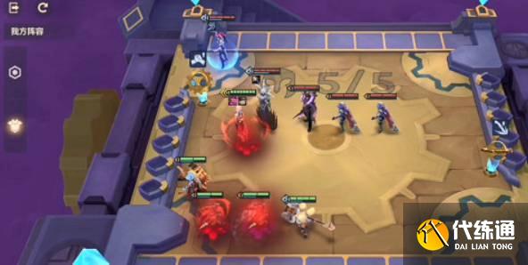 1、第一关:选一个三星偏肉的英雄在前排,一星英雄放在最后面的位置,对面丽桑卓的大招会攻击前排英雄,三星偏肉的英雄可以抵挡,然后保证后排英雄输出即可,站位如下: