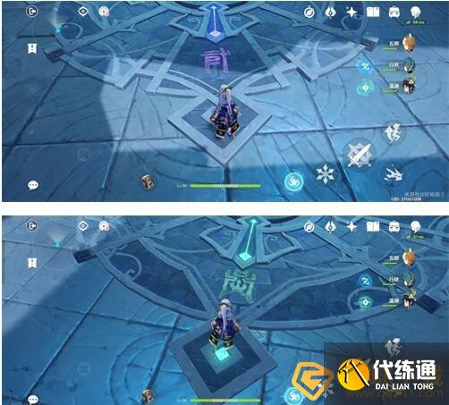 2、根据秘境中央初始地面上四个颜色对应的文字,前往有对应颜色文字的地面,踩亮所有对应的符号。