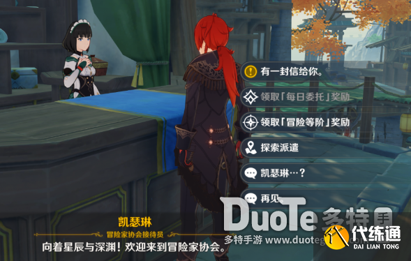 2、然后将一封信送到璃月港冒险家协会的凯瑟琳,对话完成任务