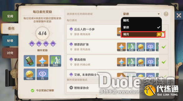 3、完成任务之后就能够触发璃月区域的冒险家协会每日委托任务了