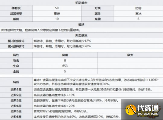 二段跳,攀爬,反向跳攻击或使用喷气背包普攻,触发震荡波,浮空目标4次,每次造成146.5%*攻击力+8点伤害,消耗250点耐力。