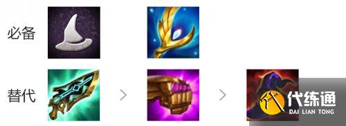 任意法强装备都可以出,"铲子"优先抢,有两个"女神之泪",就给"瑞兹"出一个"青龙刀"("瑞兹"的蓝条会越来越长)。C位有一个输出装备之后,就拿"奥恩"的肉装。