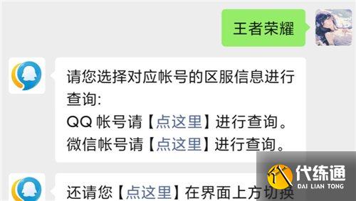 2、关注公众号后发送【王者荣耀】四个字,之后点击登陆QQ/微信账号,选择被禁言角色的所在区服。