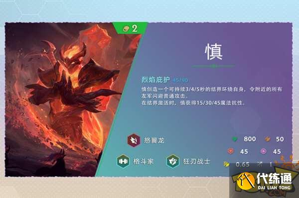 云顶之弈s7慎技能烈焰庇护是创造一个可持续3或4或5秒的结界环绕自身,令附近的所有友军闪避普通攻击,在结界激活时,慎获得15或30或45魔法抗性,慎的生命值是800,攻击力是50,护甲是45,魔抗是45。