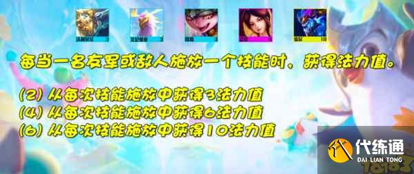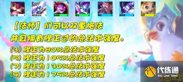 当前版本的法师技能效果也更改为双重施法,双重法师能够为魔导师提供2次法力值加成,对于魔导师技能释放来说无疑是最舒服的。因此我们这套阵容开高法师羁绊,不是为了提升法师的技能伤害,而是为了能够让魔导师回复蓝量。