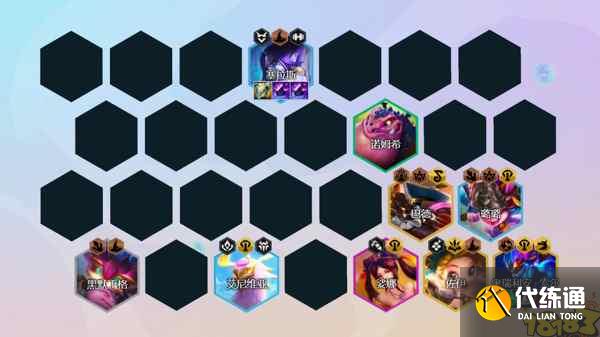 1、阵容组成:黑默丁格、塞拉斯、璐璐艾尼维亚、娑娜、索尔、佐伊、巴德