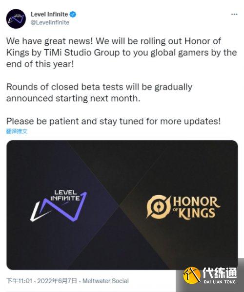 Level Infinite宣布,将在今年年底在全球发行天美工作室群的《王者荣耀》。前段时间登上热搜的英文版语音包或与此有关。