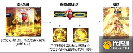 光球下方的圈和玩家脚下的圈是对应的,4个光球中只会有1个球下方光圈的形状和玩家脚下的圈吻合。玩家要做的就是快速反应,找到和自己脚下的圈形状一样的光球,然后控制落点使自己下落到正确的光球上,获得护罩,躲避一轮爆炸攻击