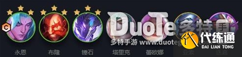 1、阵容:永恩+布隆+锤石+塔里克+蕾欧娜+亚索+迭嘉