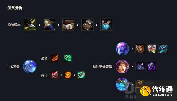 起手拿攻速或者腰带,先去做韦鲁斯的羊刀或者霞的轻语,没有拿到攻速的情况下,优先选择拿腰带合成奥恩的日炎或者俄洛依的救赎,轻松度过前期。