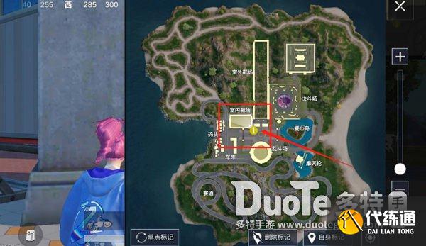 1、首先我们来到特训岛地图,前往室内靶场