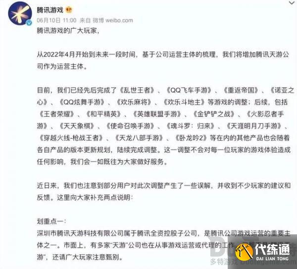 “腾讯天游”与“腾讯计算机、腾讯科技”等一样,是腾讯公司下设的公司主体之一,公司主体的新增、调整、梳理并不等同于游戏运营团队的调整,游戏的研发和运营团队均保持不变。