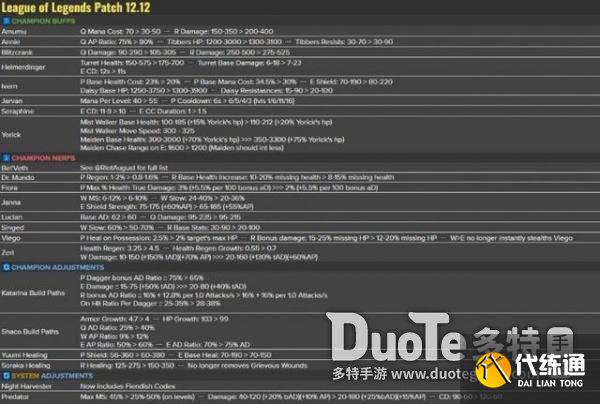 lol12.12版本更新介绍 lol12.12版本更新哪些内容