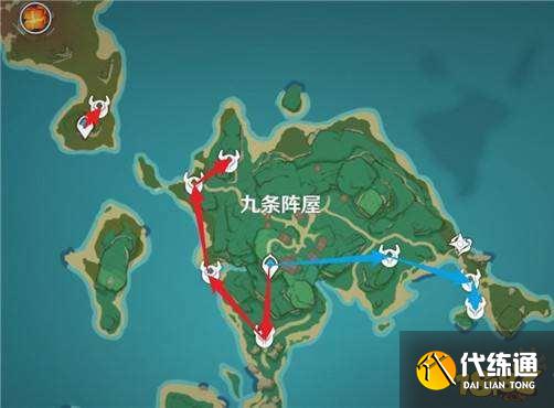 4、九条阵屋:红色线路为高效线路,适合日常刷取。