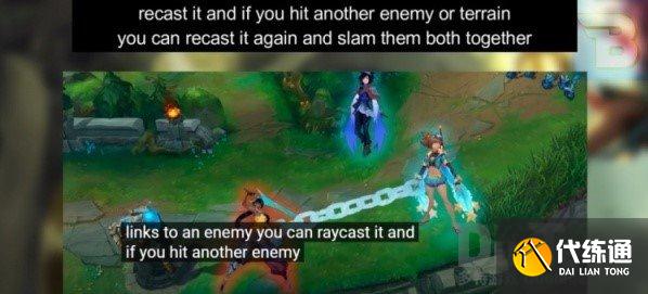 但是不清楚E技能的第二段如何选择触发哪种效果,我猜可能和时间有关,比如E技能命中后的0.5秒内使用二段E就是鞭子从敌方单位身上伸长蔓延形成二次捆绑,0.5秒过后就是扔。