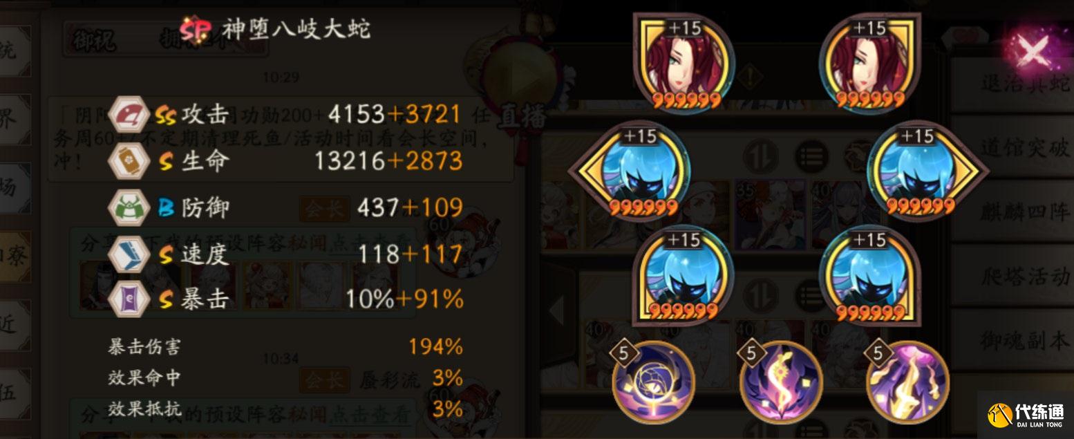 SP大蛇+饭笥+不见岳+SP辉夜姬+(驴/sp灯/不知火),9层要求速度235,10层185即可,暴击套破势大蛇就OK,9-10层饭笥才需要出手