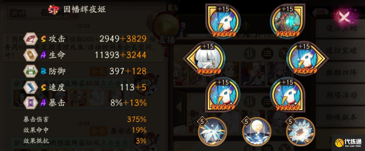 SP辉夜姬:散件(火够),攻攻爆(XX爆),满2技能