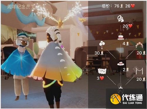 3、全部兑换完的话需要76个蜡烛和26个爱心,以上就是光遇周年庆2022兑换图最新一览了,希望可以帮到大家。
