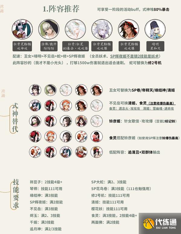 3.17~19点的逢魔boss跟日常逢魔一样,推荐挂机阵容:千缘丑刀灯、SP蛇篡位或其他日常逢魔阵容也可以