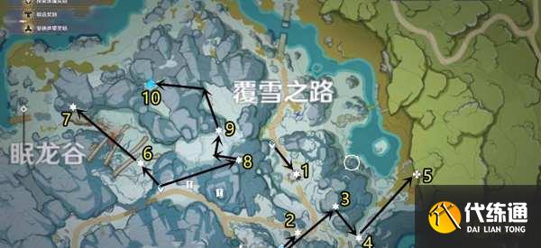1、在覆雪之路和眠龙谷的中间位置,一共有10个。