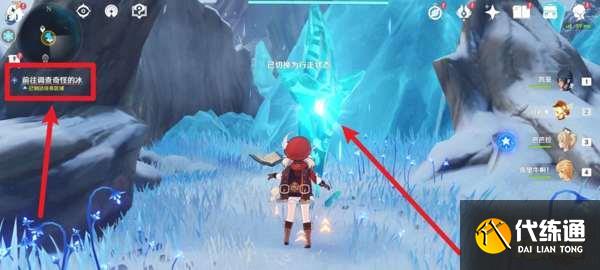 2、接着玩家根据提示前往任务地点,在任务地点中可以找到奇怪的冰。