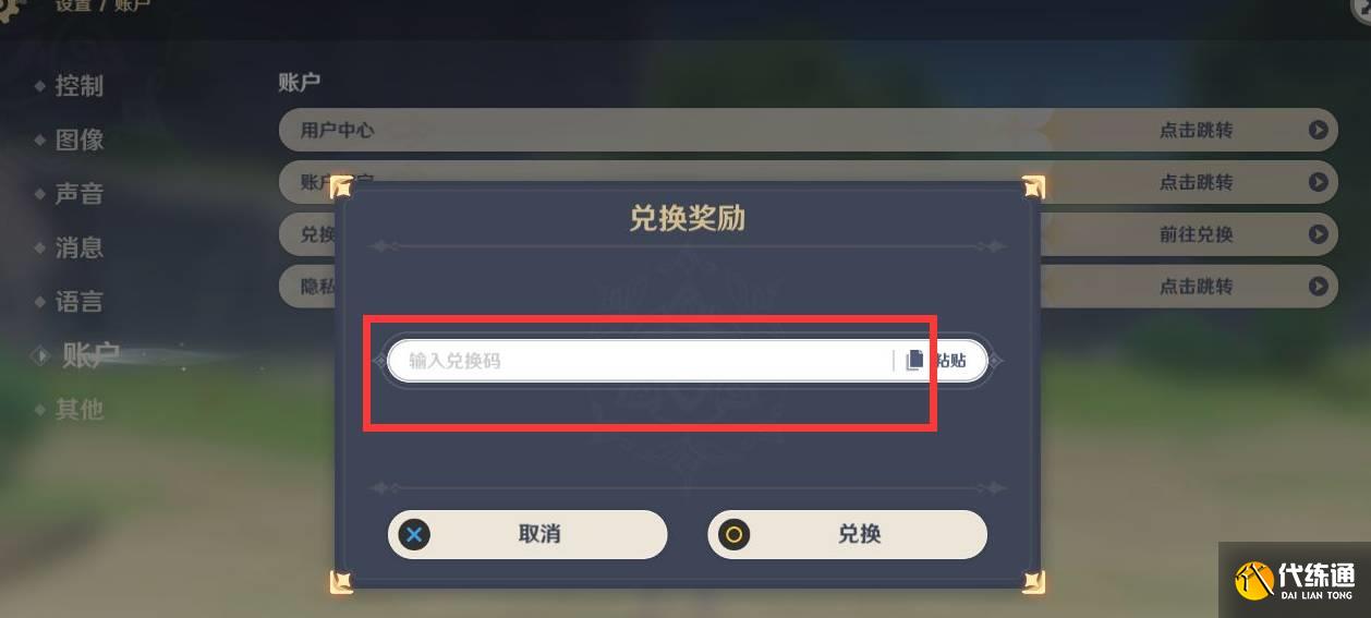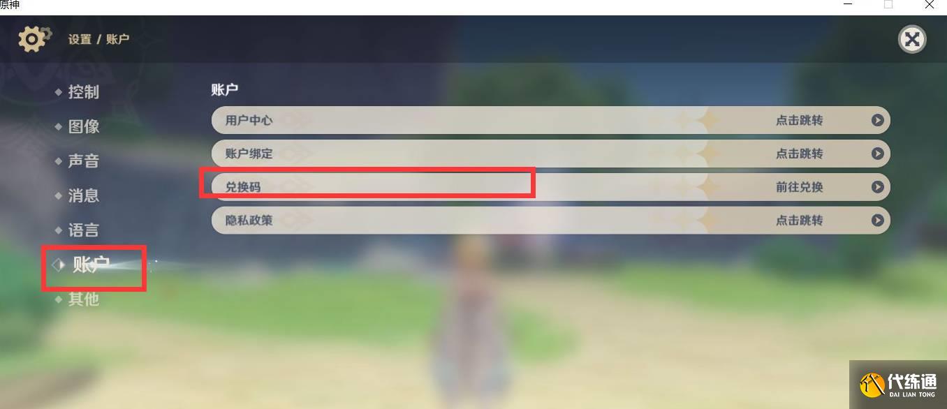 3、在设置界面中,点击进入账号界面,就可以看见兑换码