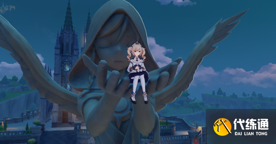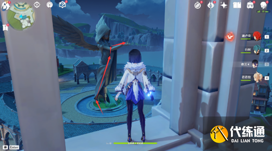 1、来到蒙德城,飞到风神像的手掌心上面去,可以按照下图所示的顺序一点点爬上去。