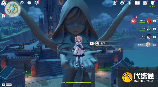 2、来到风神像的手上就会出现一个坐下按钮,正常的话点击坐下就可以了