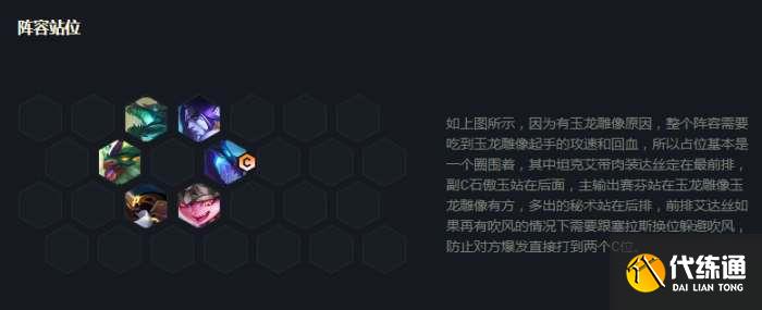副C石傲玉则需要带上羊刀和饮血,没有饮血的话则也得有科技抢或者正义手这件回复装备,保证能够在赛芬打出爆发后能够去清理战场的作用。